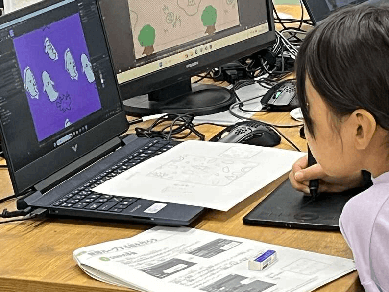 Créatif(クレアティフ)は、メディアアートを楽しみながら情報プログラミングを学び、アートやデザインの作品を生み出す教室です。「メディアアート」は、コンピュータや様々な科学技術をクリエイティブに活用したアート。形や色、動きを自由に楽しみながらアートとプログラミングに自然と触れ、創造力を育みます。創り出す楽しさを体験しながら、自主的に新しい技術に触れ、将来に活きる創造力を身につけていきます。